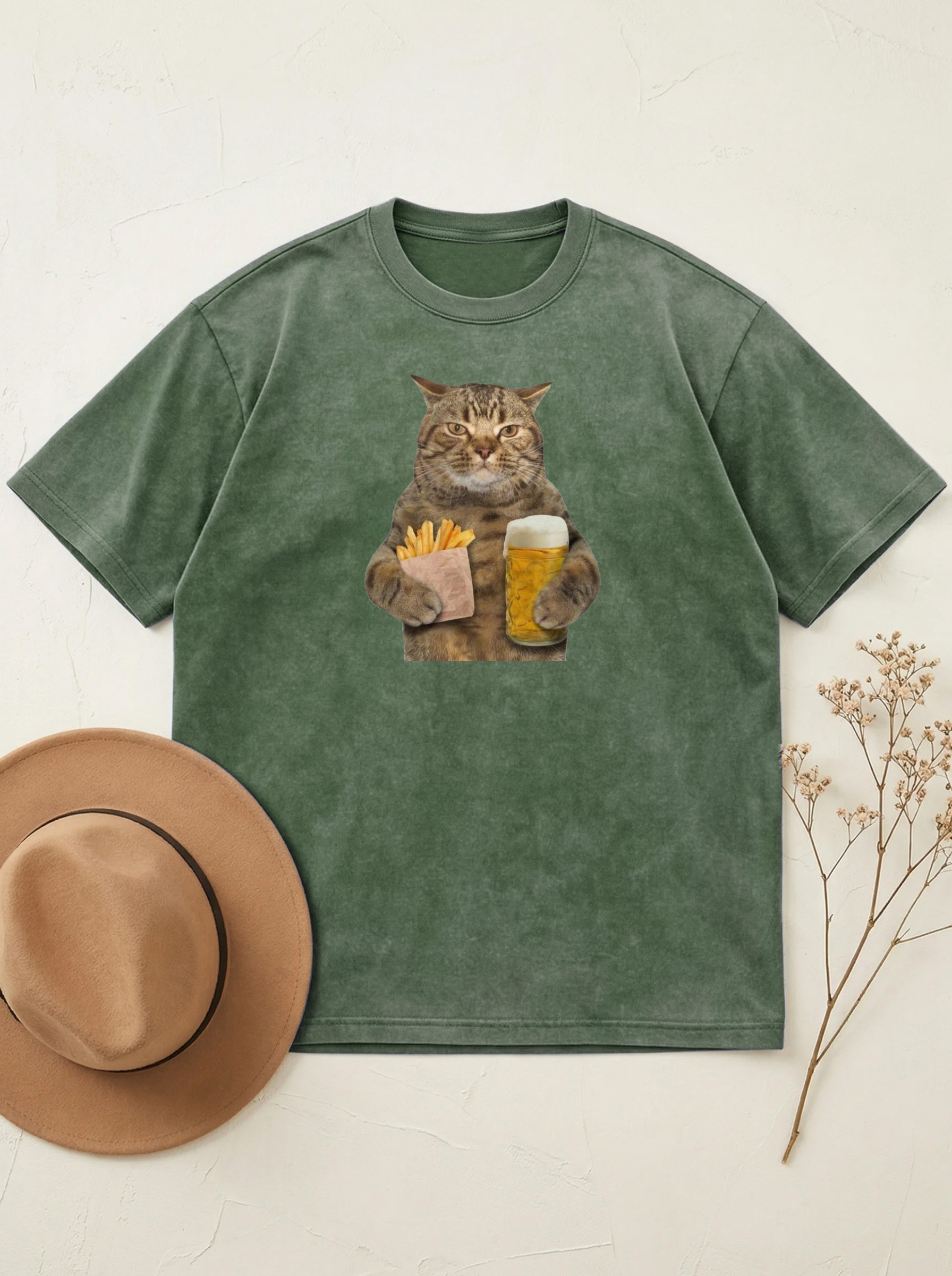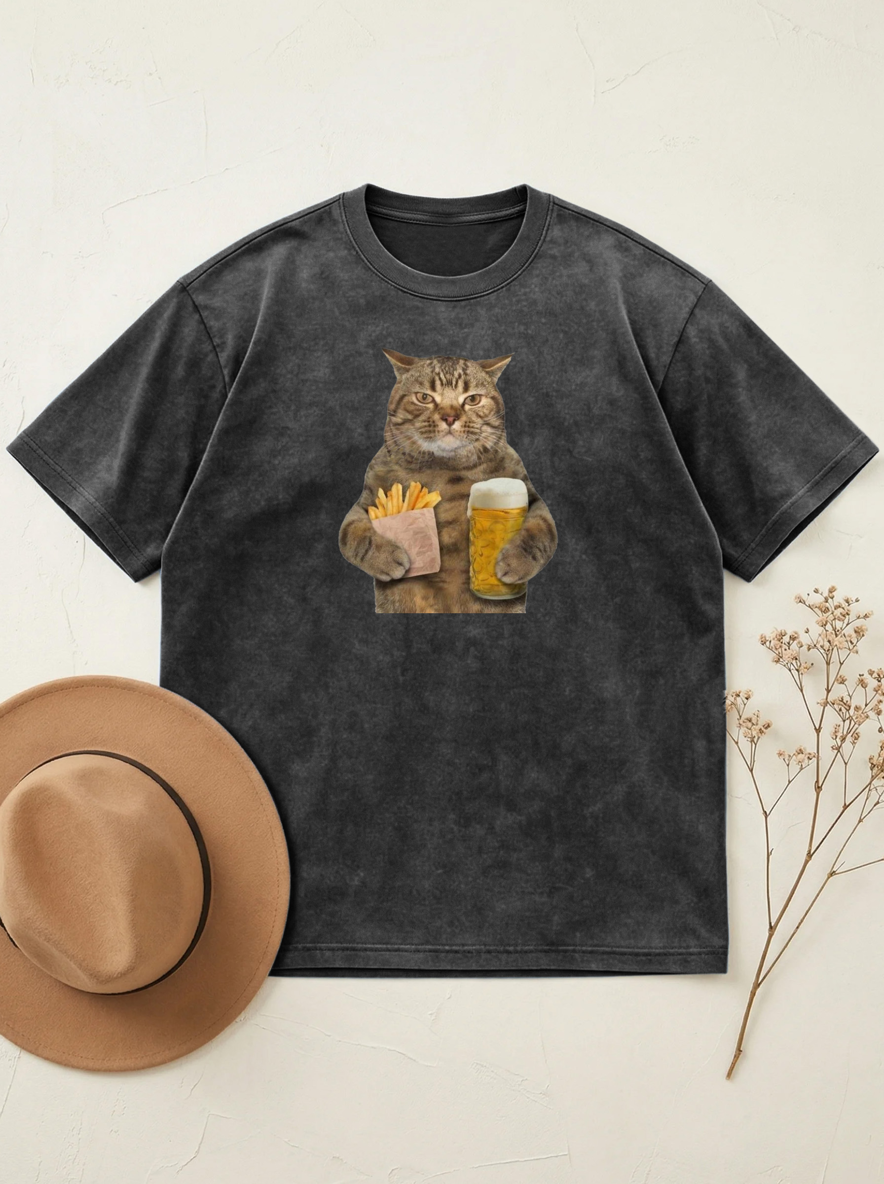 Funny Cat Holding Chips And Beer Cotton Short-sleeved T-shirt